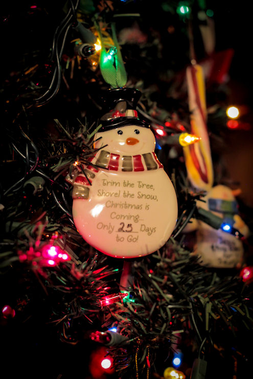 I love the ornaments that connect me to the memory of friends. Susan sent me this ornament, & I not only love it, but I love the memory of her as I see it on our tree. Emily & Elliot love taking turns writing down how many more days till Christmas on it.