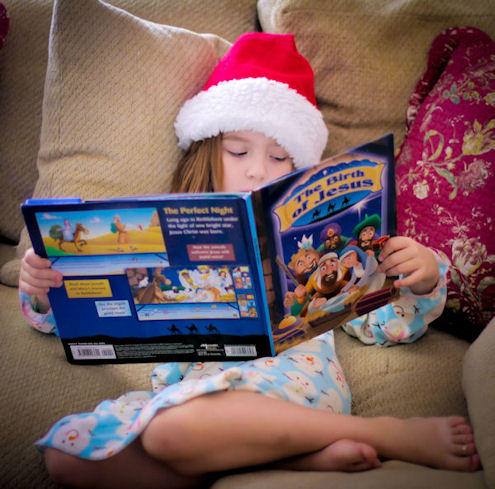 I love the many Christmas books we have in our home. We snuggle up together & spend time reading from one or two each day. It warms my heart to find scenes like this -