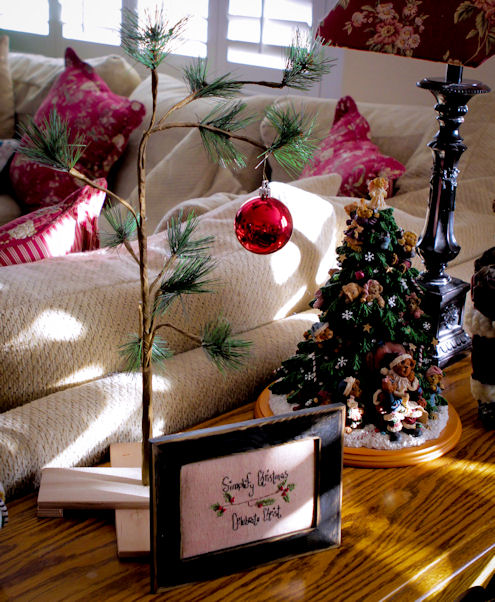 This Charlie Brown tree is a favorite during Christmas, because it reminds me that it's the simple things that bring smiles & joy. It doesn't have to be elaborate. My husband says he longs for the day that I might tell him that this is the only tree he has to put up. :)